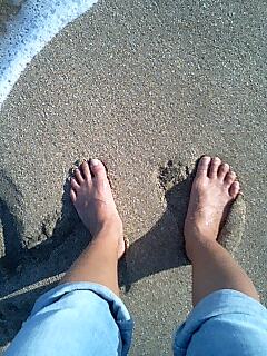 つま先に水の感触。